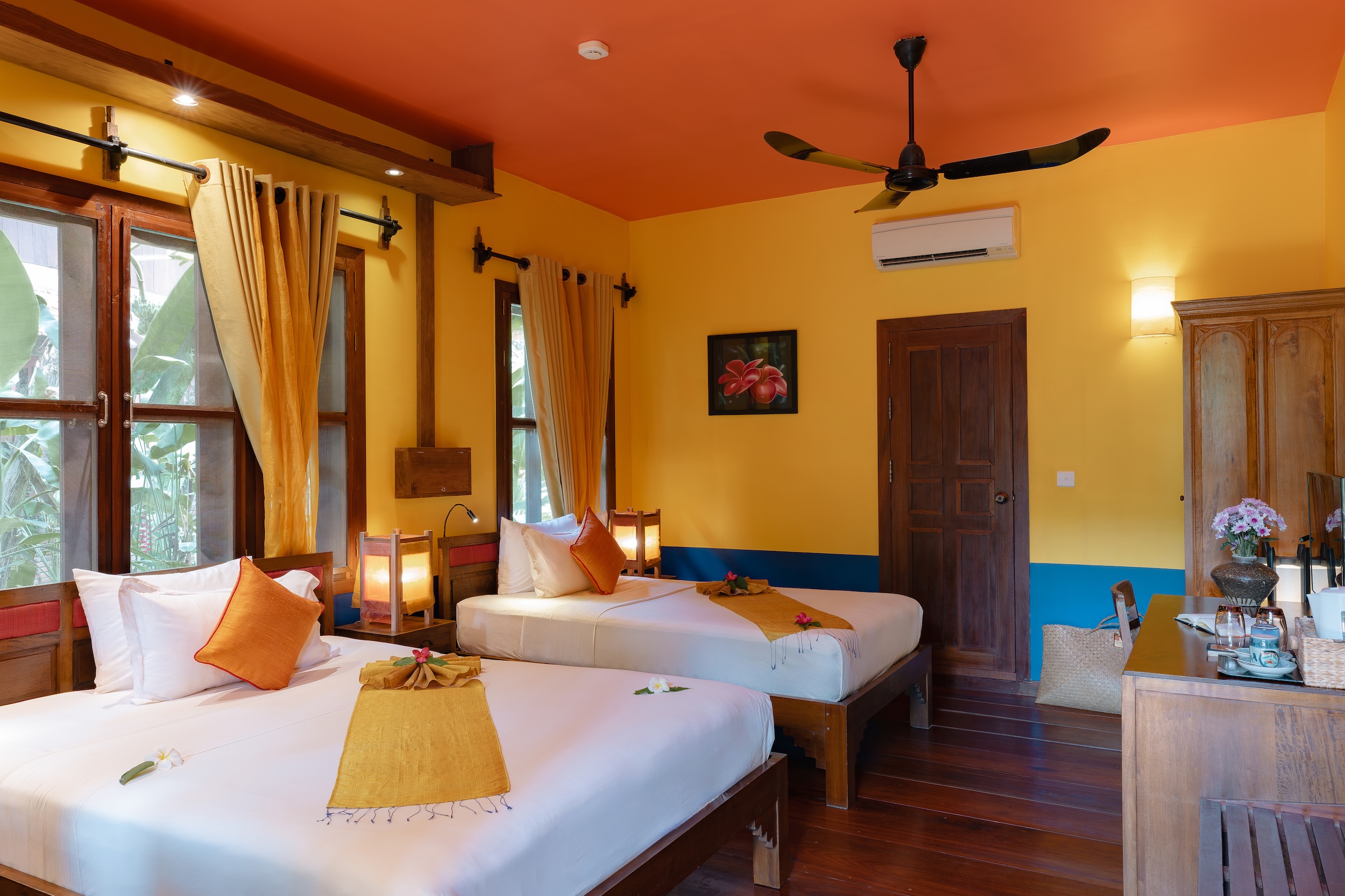 Please note that each room at Maisons Wat Kor has a unique design, even within the same category. We reserve the right to assign a different room within the same category or to offer a complimentary upgrade, based on availability. Additionally, we frequently update the color schemes in our rooms, so the colors may differ from the photos shown on our website.